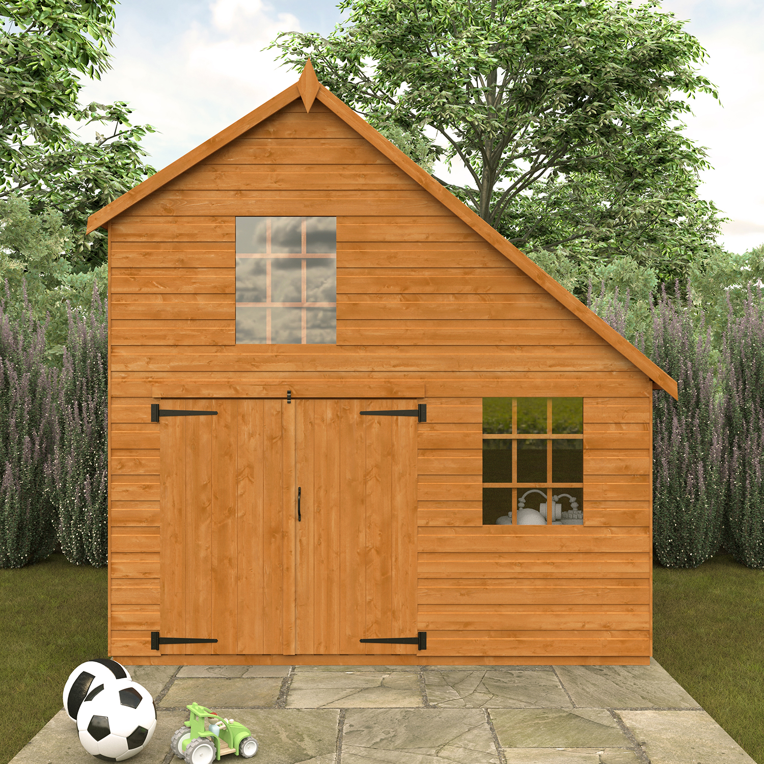 Durable and Safe: Crafted from premium 12mm shiplap cladding and sturdy 28mm x 44mm rounded four corner framing, this playhouse is built to last. The tongue and groove loglap construction adds extra strength, while the factory-treated weather-resistant basecoat and heavy-duty black mineral felt covering protect against the elements, ensuring years of outdoor fun.