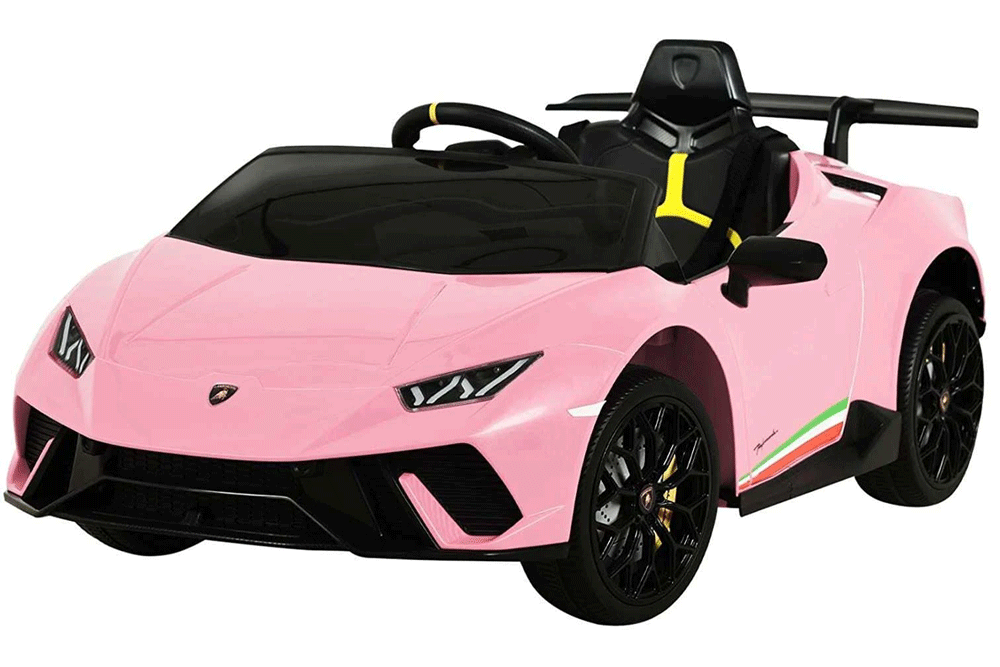 - Authentic Design: Meticulously crafted to mirror the Huracan’s sharp lines and aerodynamic curves, this ride-on car is a head-turner in white, blue, or pink.